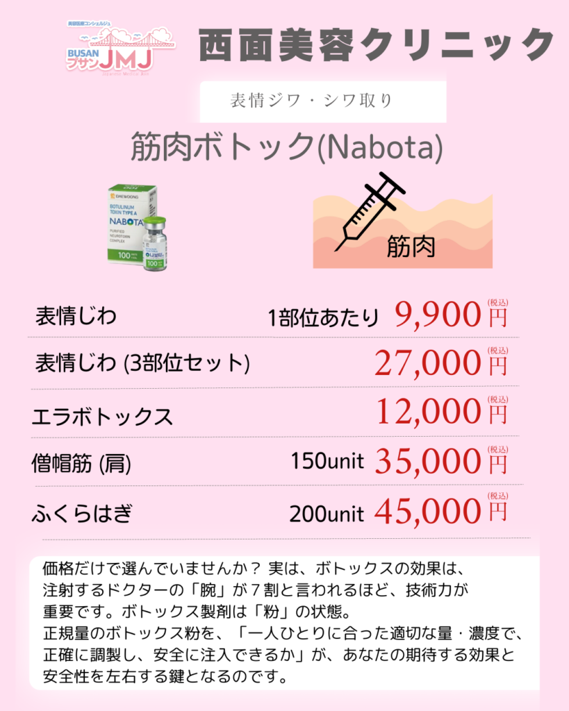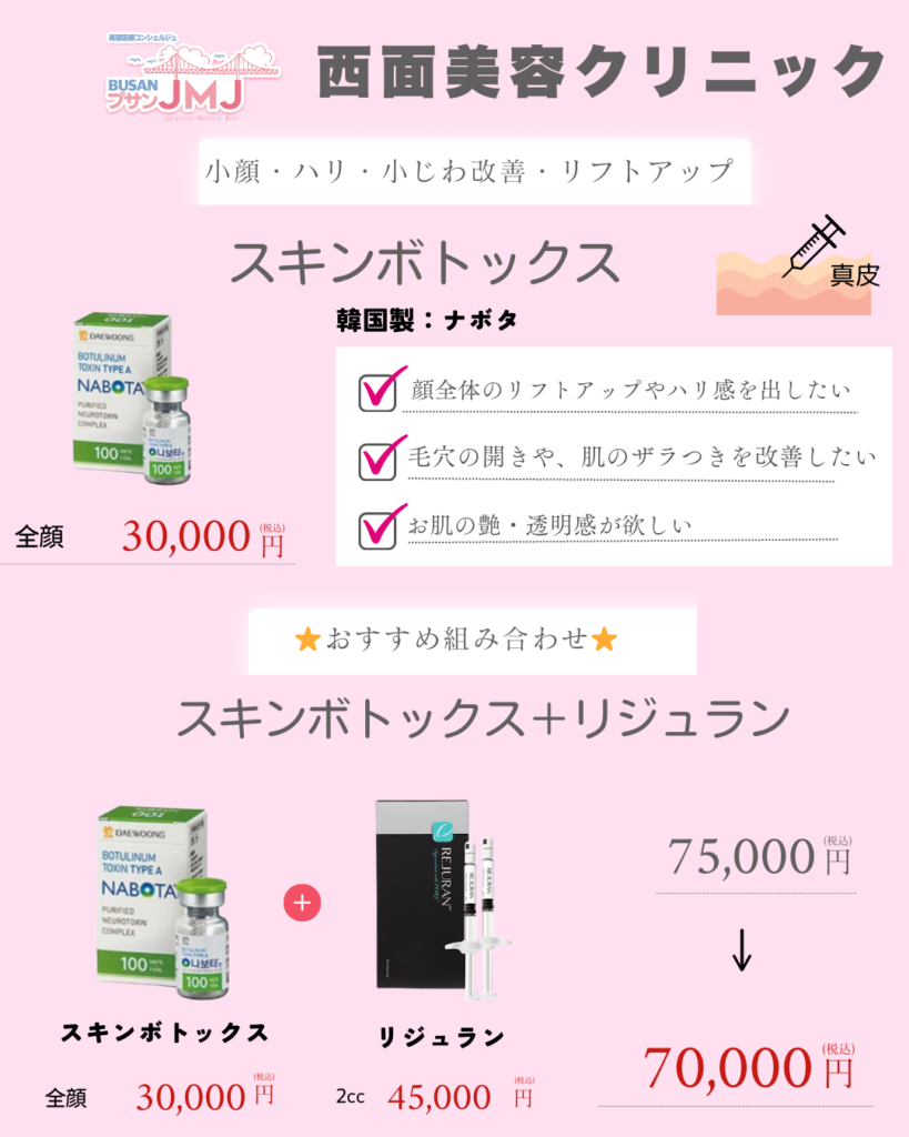 | スキンボトックス | 30万ウォン | 全顔(韓国製:ナボタ) |