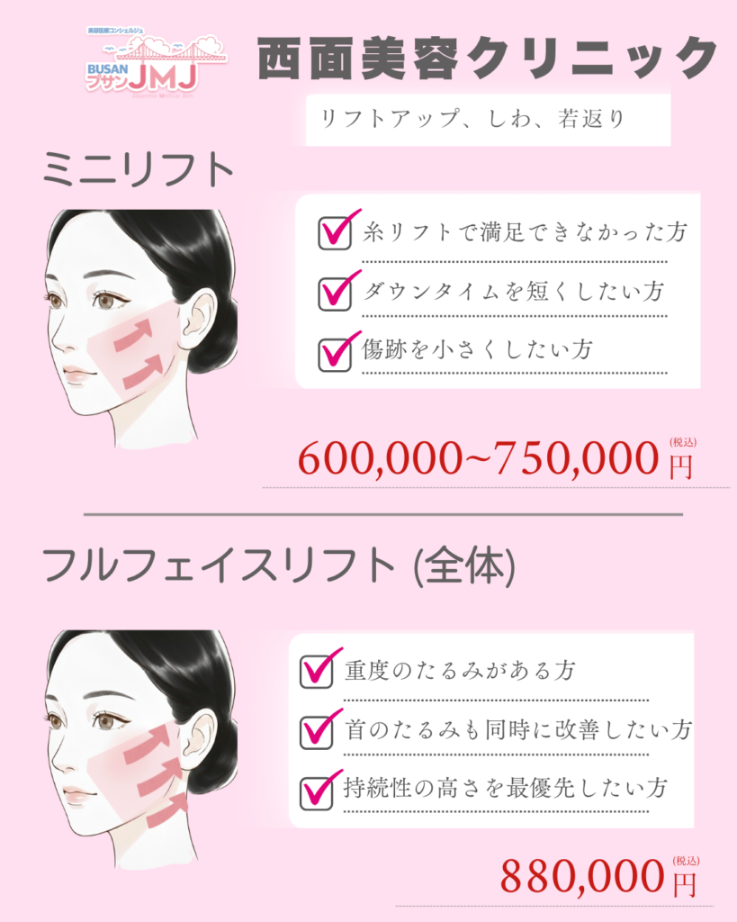 | ミニリフト | 600万~750万ウォン |