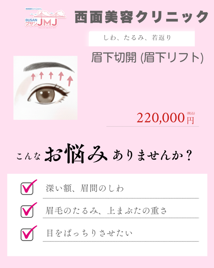 | 眉下切開 (眉下リフト) | 220万ウォン | |