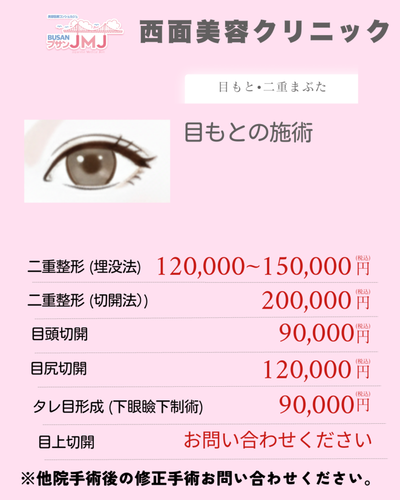 | 二重整形 (埋没法) | 120万~ 150万ウォン | |