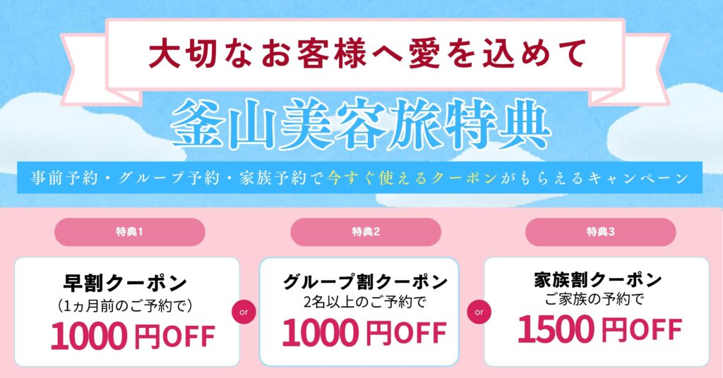 🌷 割引・キャンペーンご利用にあたってのお願い JMJが毎月ご案内しているお得なキャンペーンや各種割引をご利用の際は、ご予約時にクーポンのスクリーンショットを添えて、ご利用の旨をお知らせくださいませ。